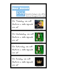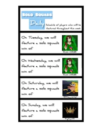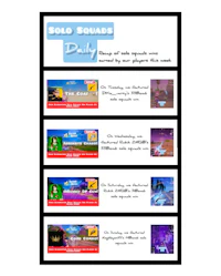 The schedule of players who will have their solo squads wins featured during this upcoming week: